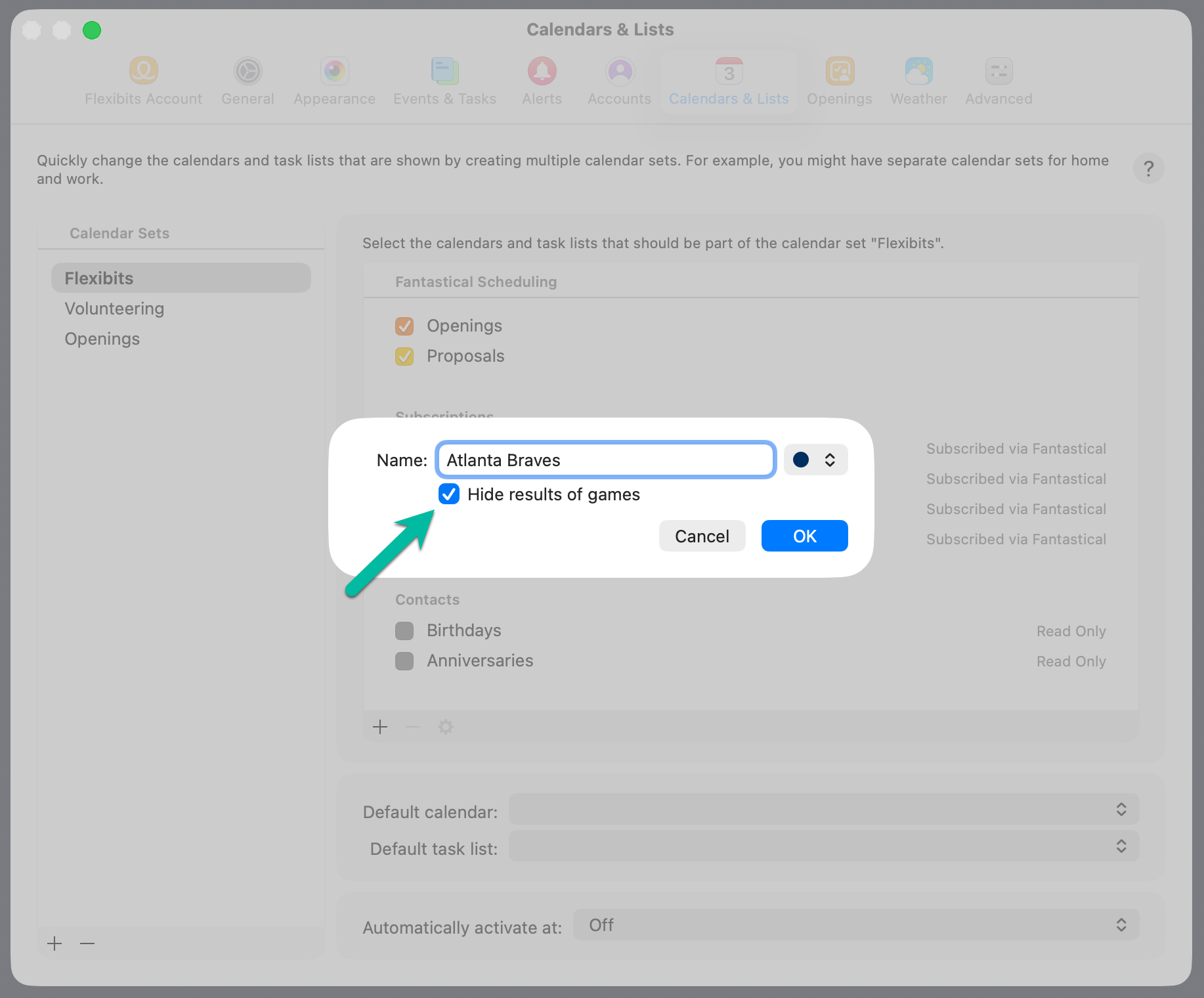 For those of us who hate having our favorite games spoiled before we have a chance to watch them, Fantastical’s Interesting Calendars provides the ability to automatically hide the results of games that have already been played.