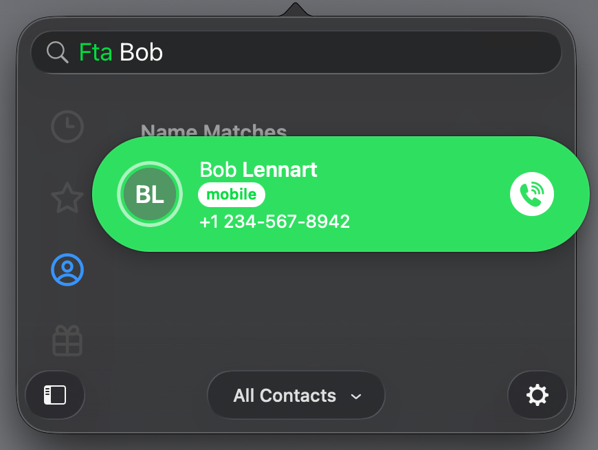 Call a contact using your phone. Uses your iPhone through Continuity or Wi-Fi Calling, or a phone paired with your Mac with Bluetooth. You can choose whether you use Continuity and Wi-Fi Calling or Bluetooth in Cardhop's Settings.